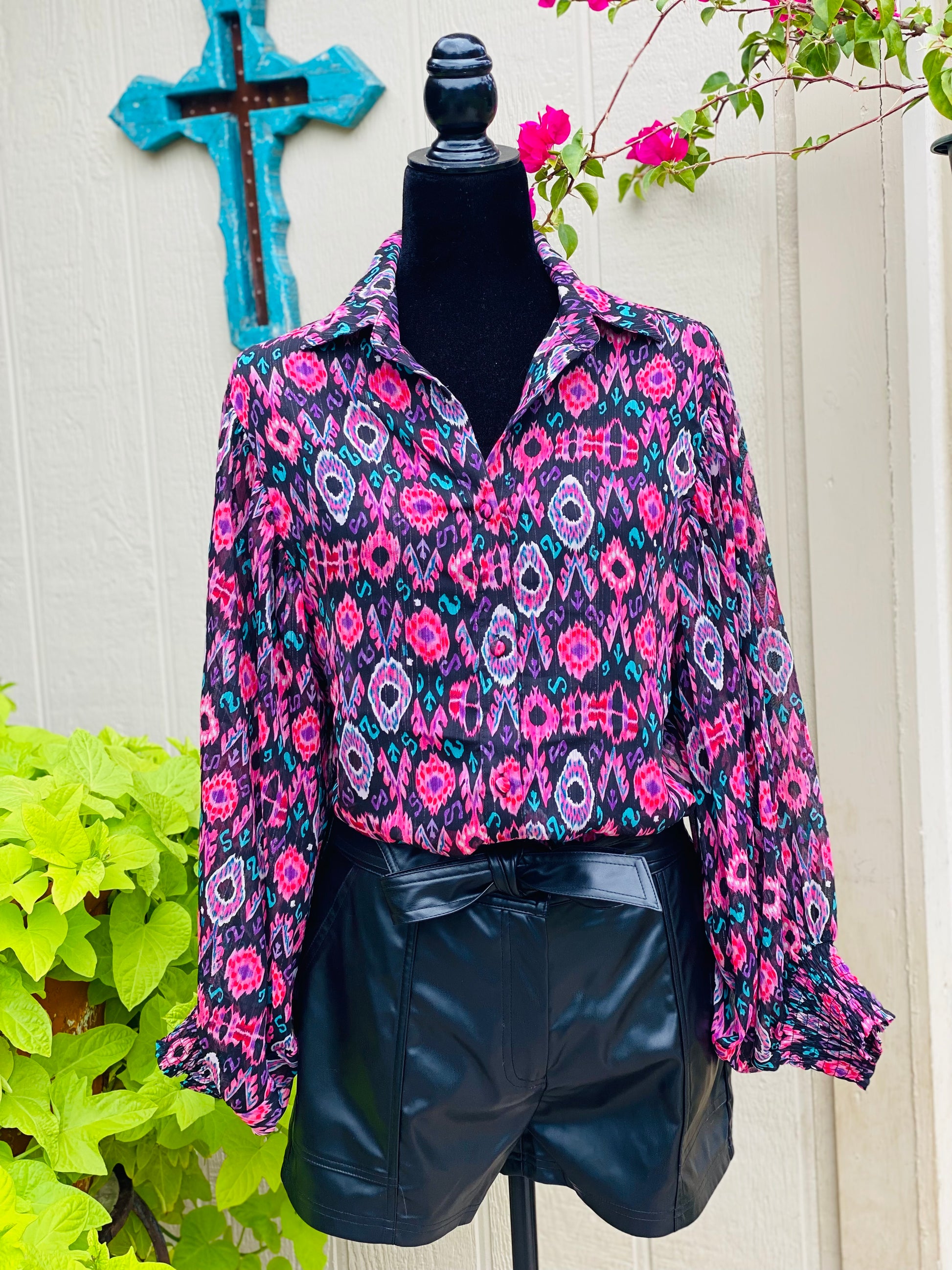 Our sheer ee:some top is beautiful with its dolman sleeves.